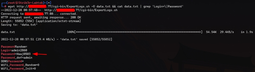 When an unauthenticated attacker requests /cgi-bin/ExportLogs.sh this will lead to downloading all configurations and Admin Credentials and accessing the Device Dashboard.