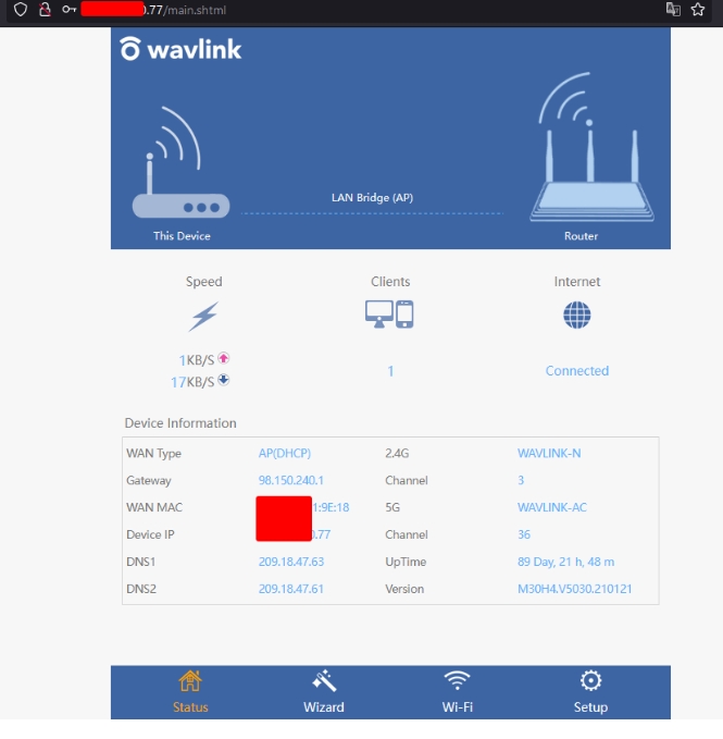 WAVLINK Aerial G - AC1200 High Power Dual Band Wireless Router (WL-WN530H4) devices running firmware version (M30H4.V5030.210121) have an access control issue, allowing unauthenticated attackers to download configuration data and log files and obtain admin credentials.